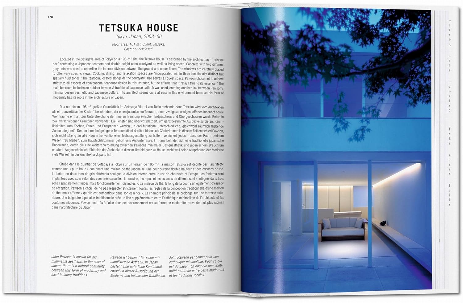 Ấn phẩm này tập hợp 100 ngôi nhà tiên phong và thú vị nhất trên thế giới được thiết kế trong hai thập kỷ qua, giới thiệu vô số tài năng mới và đã thành danh, bao gồm John Pawson, Richard Meier, Shigeru Ban, Tadao Ando, Zaha Hadid, Herzog & de Meuron, Daniel Libeskind, Alvaro Siza và Peter Zumthor. Đáp ứng các hoạt động thường nhật như ăn uống, ngủ nghỉ và trú ẩn, cũng như mang đến không gian cho trải nghiệm và các mối quan hệ cá nhân, đây là kiến trúc ở dạng cơ bản nhất và thân mật nhất.