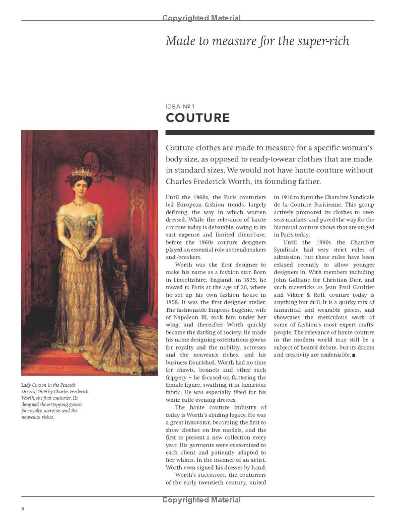 Cuốn sách cũng dành nhiều trang tôn vinh các nhà thiết kế tiên phong – những người dám thách thức chuẩn mực cũ, tái định nghĩa cái đẹp và mở ra ngôn ngữ mới cho thời trang. Qua từng “ý tưởng”, độc giả có thể thấy rõ cách mà thời trang phản chiếu tinh thần thời đại: từ giải phóng cơ thể, phá vỡ giới hạn giới tính, cho tới sự trỗi dậy của văn hóa đại chúng và toàn cầu hóa.