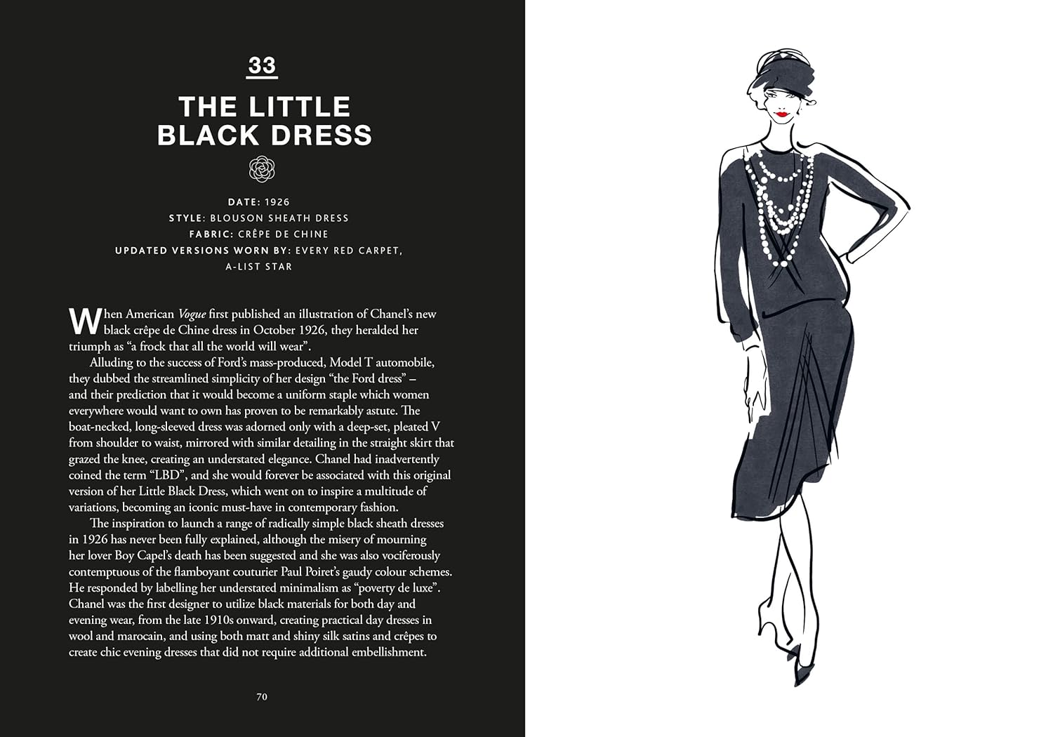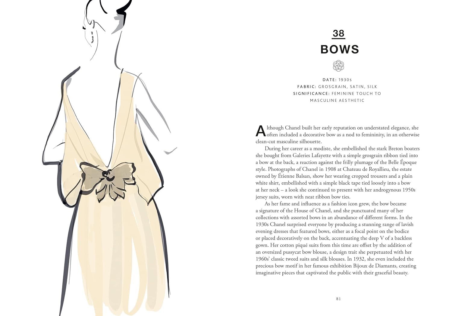 Cuốn sách là một bộ sưu tập tinh tế gồm 55 minh họa được vẽ riêng, kết hợp cùng những đoạn văn ngắn đầy cuốn hút, tái hiện những sáng tạo mang tính biểu tượng nhất của Chanel, từ thời trang, nước hoa, trang sức đến phụ kiện. Bên cạnh đó, sách còn khắc họa những địa điểm, họa tiết và con người đã truyền cảm hứng cho bà, giúp người đọc hiểu rõ hơn về tư duy sáng tạo và tinh thần tự do đã định hình nên một huyền thoại thời trang.