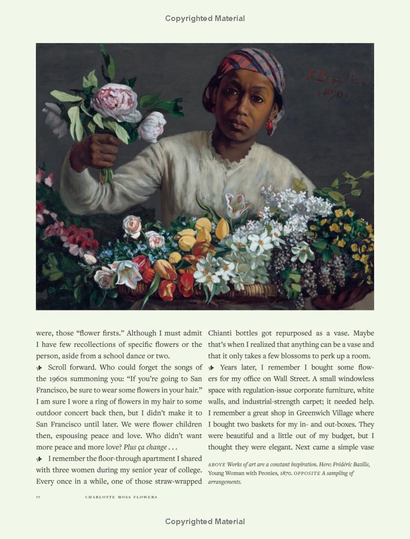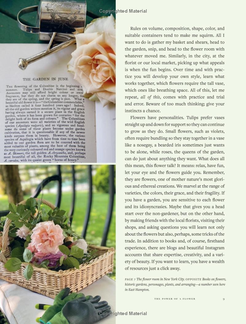 Cuốn sách cũng kể về những đóng góp lịch sử của các nhà tạo mẫu lừng danh như Gloria Vanderbilt, Pauline de Rothschild, Bunny Mellon, Constance Spry và Lady Bird Johnson, minh họa cách thiên nhiên và hoa có thể nâng tầm sự tinh tế, vẻ đẹp và thanh lịch trong đời sống hàng ngày.