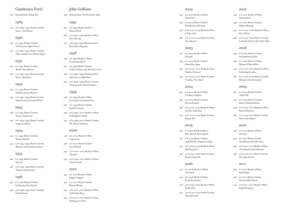 Cuốn sách lần đầu tiên tập hợp đầy đủ các bộ sưu tập thời trang cao cấp của Dior, bao gồm cả ready-to-wear từ thời John Galliano – giai đoạn các buổi trình diễn loại hình này đạt tầm quan trọng mới – cùng hai bộ sưu tập đầu tiên của giám đốc sáng tạo Maria Grazia Chiuri, được bổ nhiệm năm 2016. Đây là cơ hội hiếm có để theo dõi sự phát triển liên tục của một trong những nhà mốt danh tiếng nhất thế giới và khám phá những bộ sưu tập ít được biết đến.