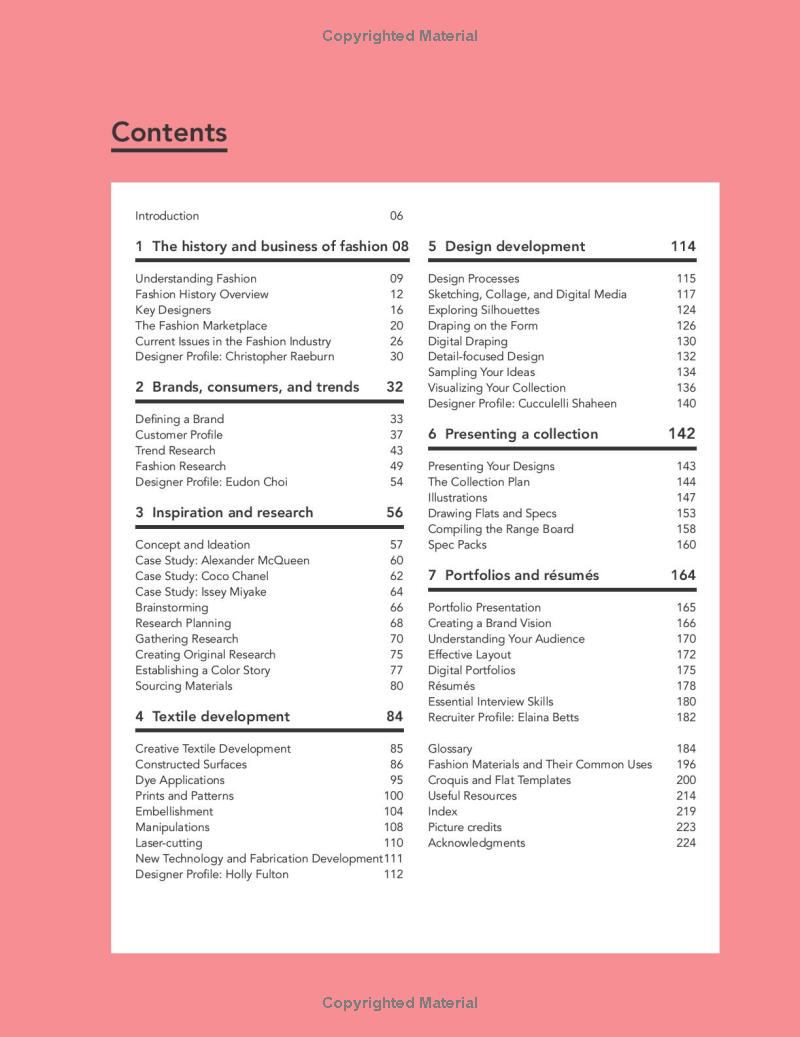 Cuốn sách nhập môn này hướng đến sinh viên thiết kế thời trang trên toàn thế giới, cung cấp một hướng dẫn rõ ràng về quy trình thiết kế. Nó theo dõi từ bối cảnh lịch sử và thương mại của ngành đến khâu trình bày bộ sưu tập cuối cùng, giúp sinh viên hiểu những yêu cầu thực tiễn của nghề.