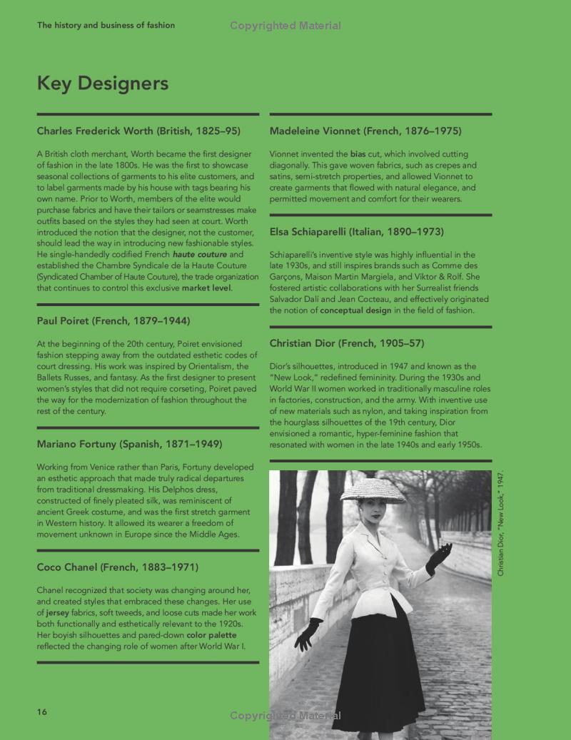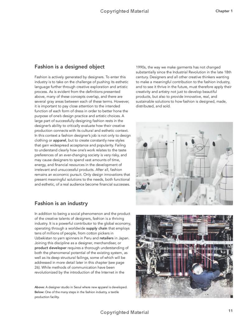 Nội dung được hỗ trợ bởi hình ảnh đầy cảm hứng – nhiếp ảnh thời trang, minh họa, tranh phác thảo, bản vẽ kỹ thuật và đồ họa thông tin – cùng các nghiên cứu điển hình. Nhờ đó, cuốn sách mang đến một cái nhìn tổng quan độc đáo về ngành công nghiệp thời trang.