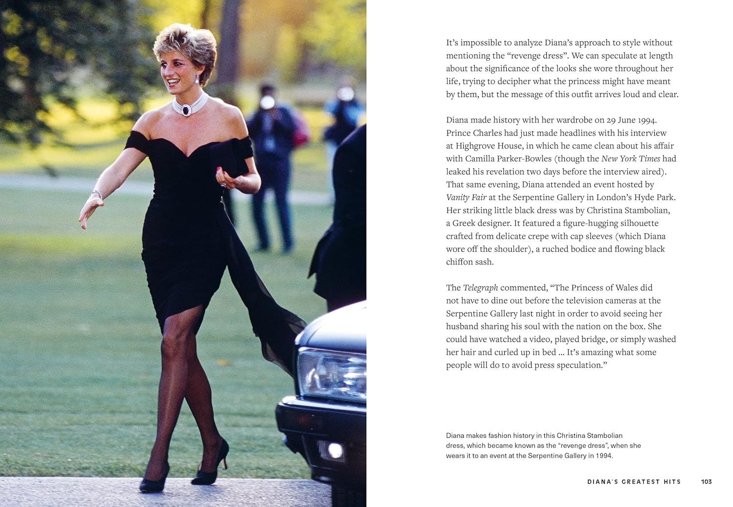 Cuốn sách Icons of Style – Diana giới thiệu hơn 100 bức ảnh ghi lại những bộ trang phục tiêu biểu nhất của bà. Nó khám phá lý do Diana chọn những nhà thiết kế và phong cách mà bà luôn yêu thích, đồng thời truyền cảm hứng để độc giả nuôi dưỡng gu thời trang riêng.