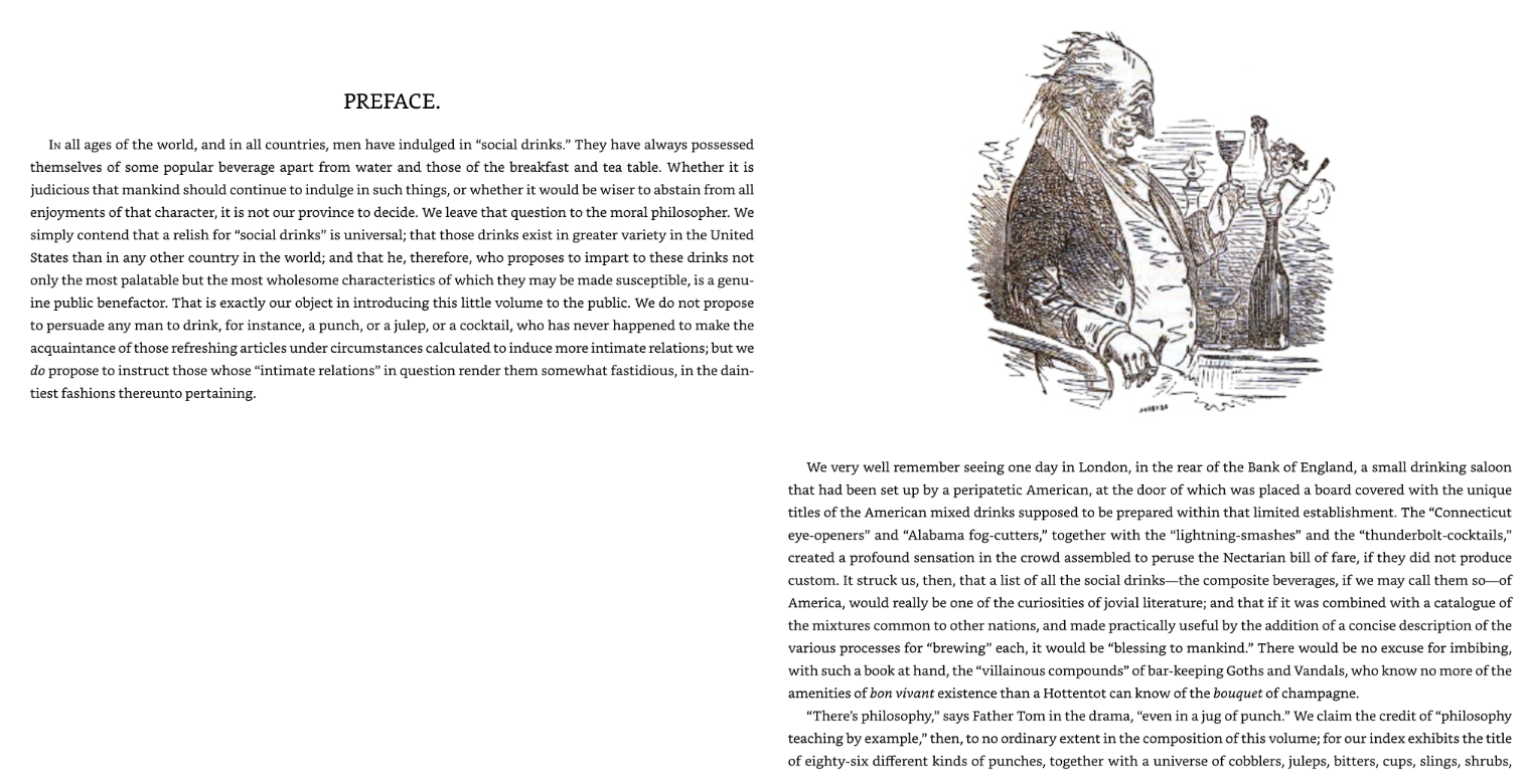Tác phẩm kinh điển này được coi là cuốn sách hướng dẫn pha chế và cocktail nổi tiếng nhất mọi thời đại, ghi lại một thời kỳ uống rượu đã qua nhưng không bị lãng quên. Cuốn sách chứa hàng trăm công thức, từ những truyền thống pha chế cổ điển đến các sáng tạo của chính Thomas.