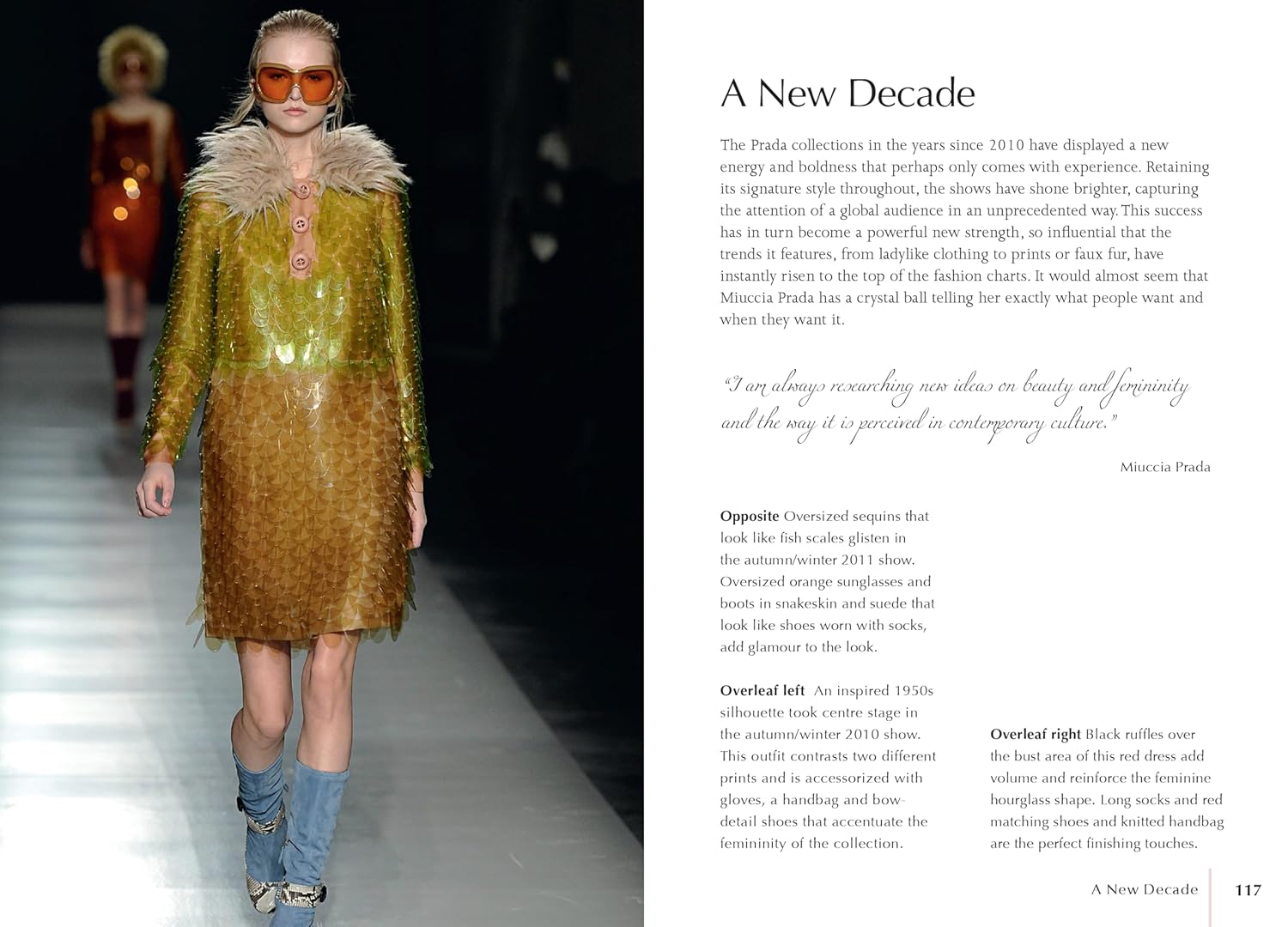 Thông qua hình ảnh trang phục cá nhân, sàn diễn và nhiếp ảnh thời trang, cuốn sách tôn vinh sức ảnh hưởng của Prada và người phụ nữ đứng sau thương hiệu. Định dạng nhỏ gọn, thiết kế tinh tế khiến đây trở thành món quà lý tưởng cho mọi tín đồ thời trang.