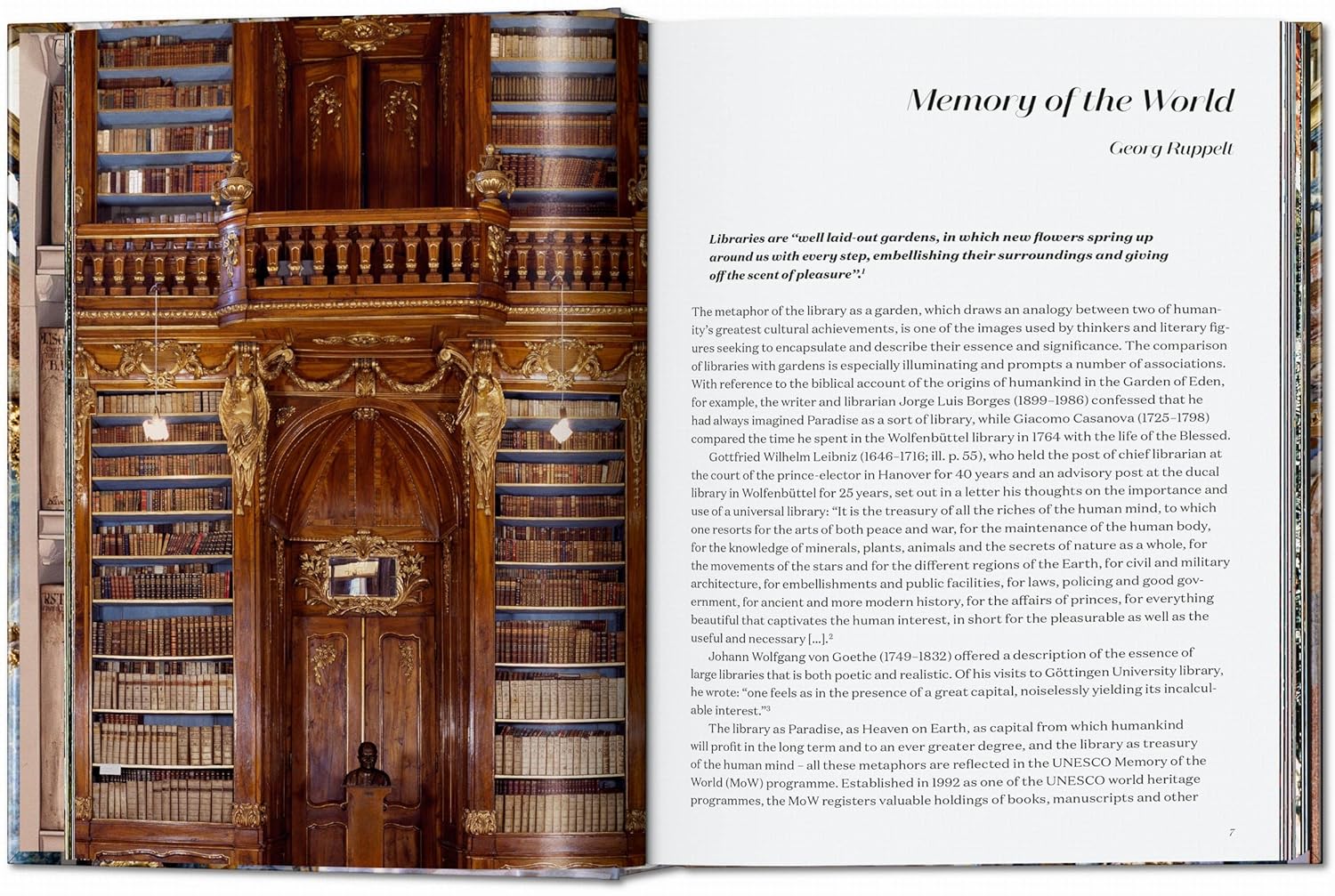 Trong hành trình nhiếp ảnh này, Massimo Listri khám phá những thư viện cổ kính và đẹp nhất thế giới, ghi lại vẻ đẹp kiến trúc, lịch sử và không gian tĩnh lặng của chúng. Ông dẫn người xem qua các thư viện tư nhân, công cộng, tu viện và học thuật có niên đại từ thế kỷ 8, nơi lưu giữ những bản thảo, cuộn giấy và sách in sớm quý giá.