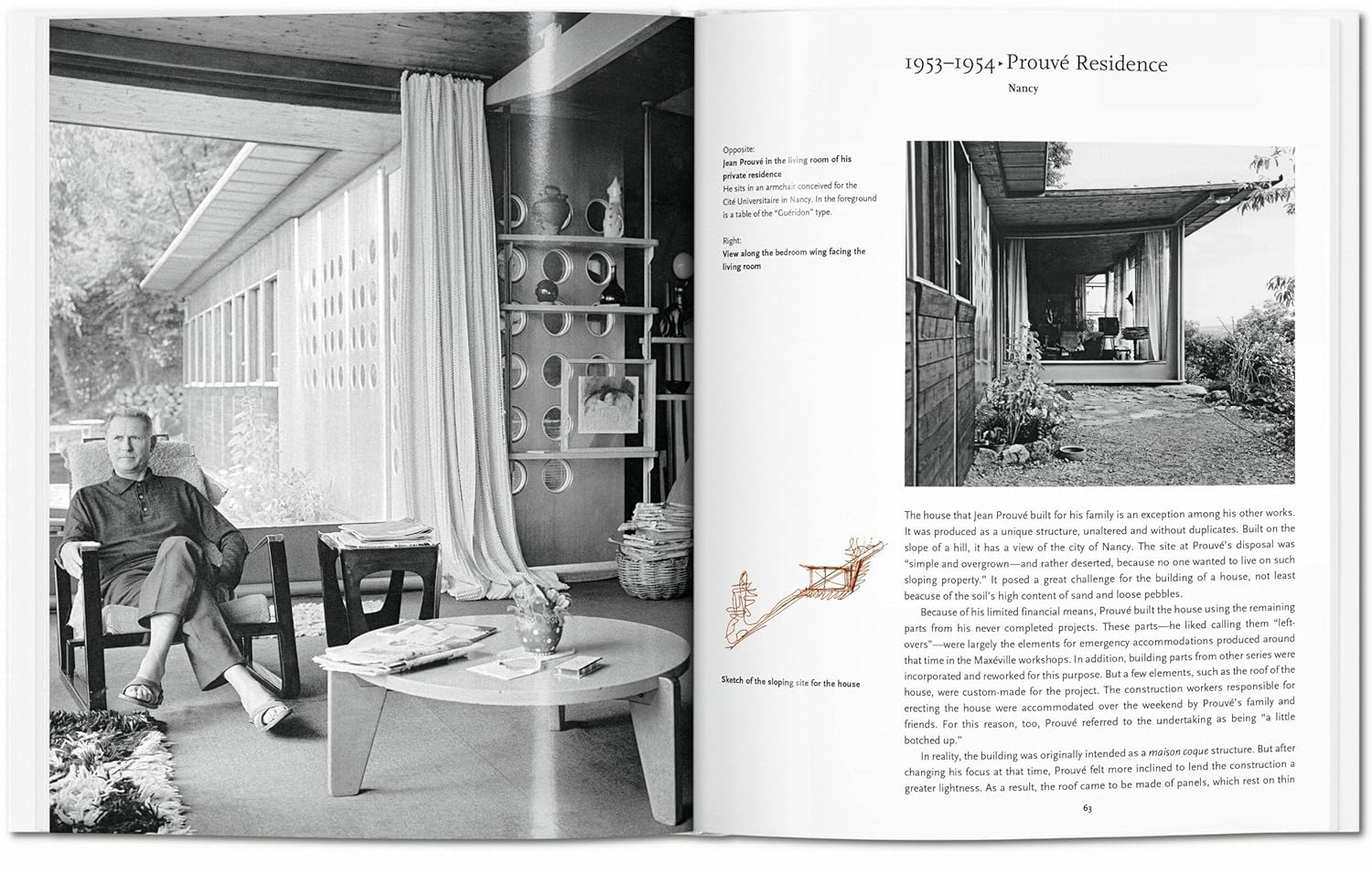 Từ những nhà bạt triển lãm quy mô lớn nhưng mang tính tạm thời, đến những dụng cụ nhỏ gọn như dao mở thư; từ các hệ thống kiến trúc mô-đun đến thiết kế đèn nội thất, các tác phẩm của Prouvé luôn phục vụ chính xác công năng, giảm thiểu tối đa sự cầu kỳ và thể hiện vẻ đẹp tinh tế, điềm đạm. Được các nhà thiết kế, kiến trúc sư và kỹ sư trên toàn thế giới ngưỡng mộ, Jean Prouvé để lại một di sản phong phú và giàu cảm hứng – hoàn toàn tương ứng với tinh thần của cuốn sách nhỏ gọn này, nơi cuộc đời và sự nghiệp của ông được khái lược một cách súc tích và rõ ràng.