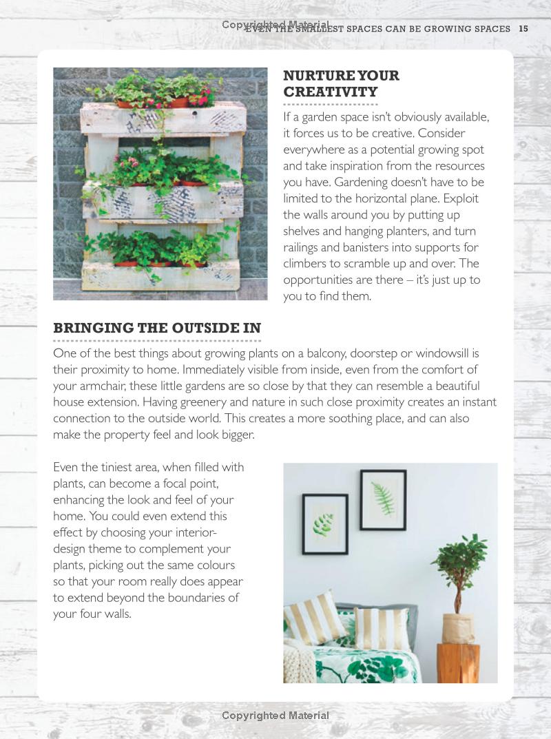 RHS Little Book of Small-space Gardening chứa đầy thông tin thực tiễn và ý tưởng truyền cảm hứng dành cho bất kỳ ai muốn trồng cây trong nhiều không gian ngoài trời khác nhau, từ ban công đến cầu thang, bệ cửa sổ đến lối vào nhà.