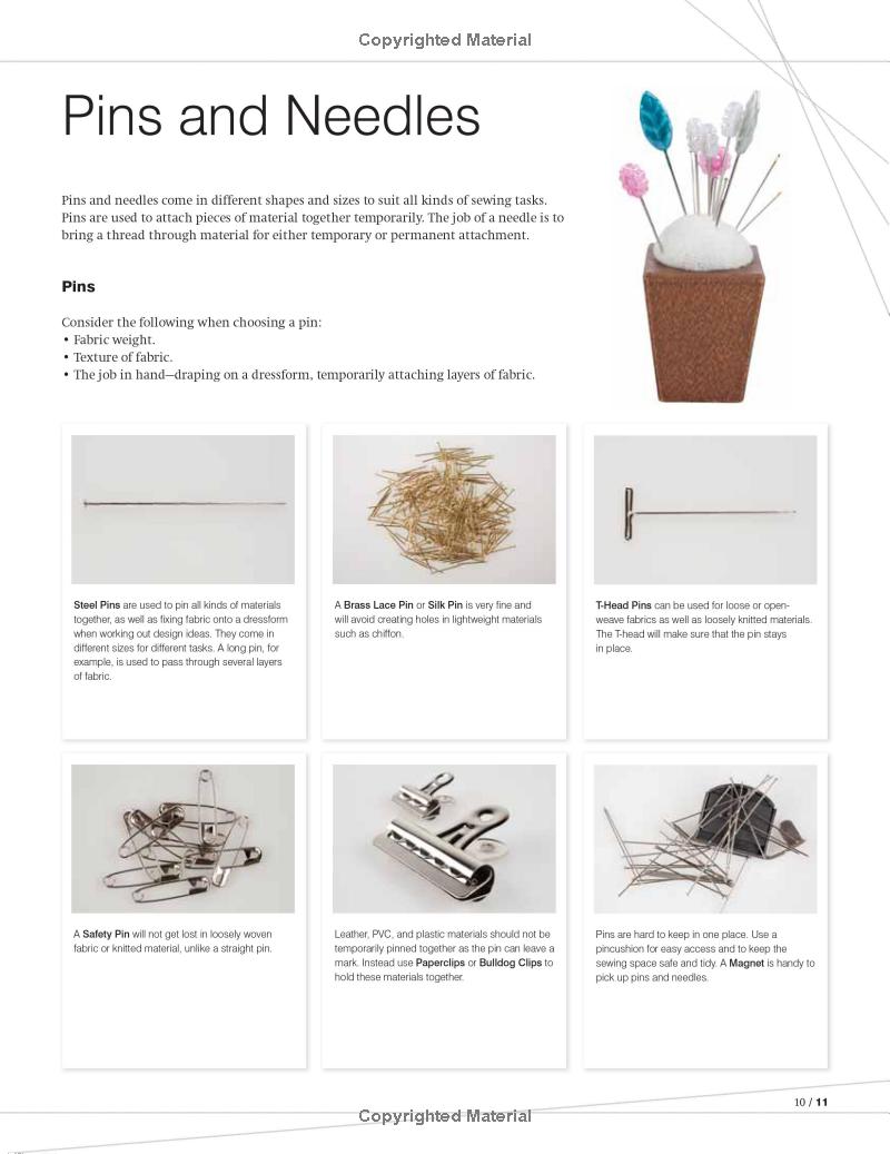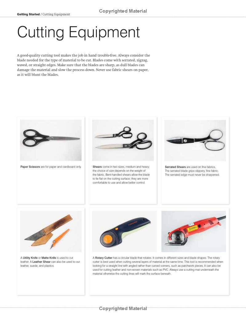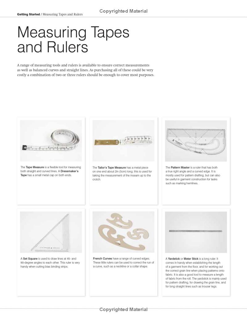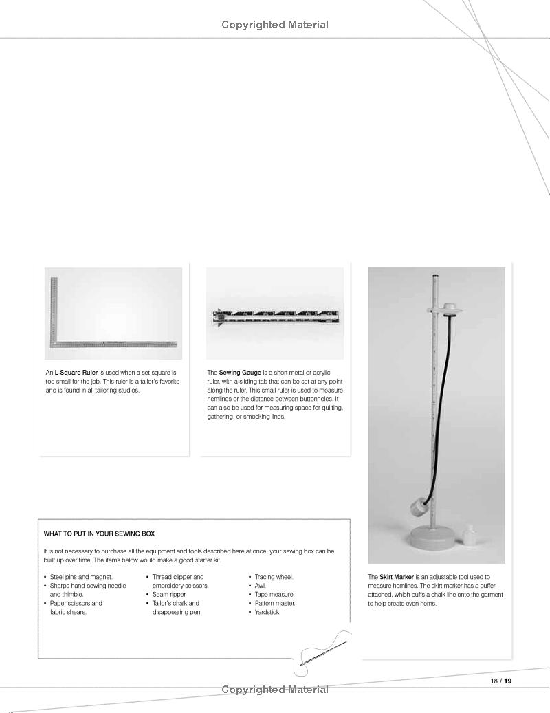 Chương Một giới thiệu về các dụng cụ và máy móc may (bao gồm cả máy công nghiệp). Chương này giải thích cách làm việc với các mẫu rập (pattern) và các phương pháp cắt vải.
