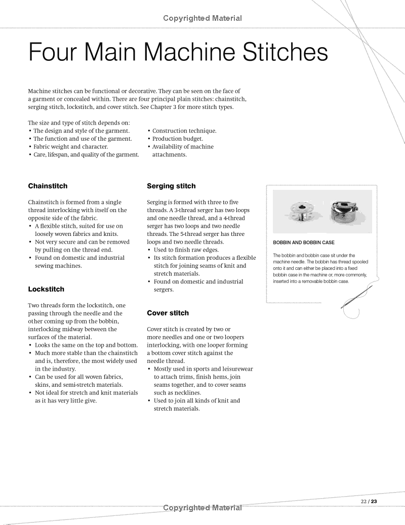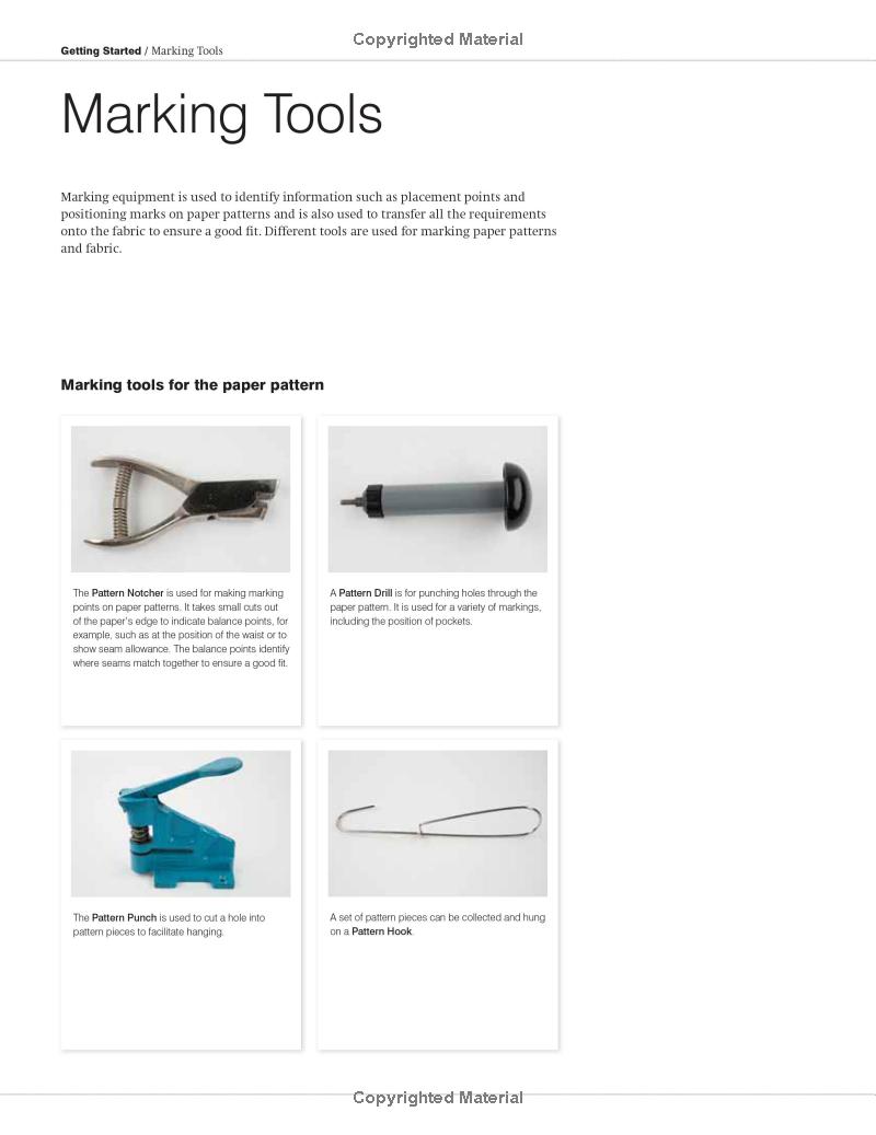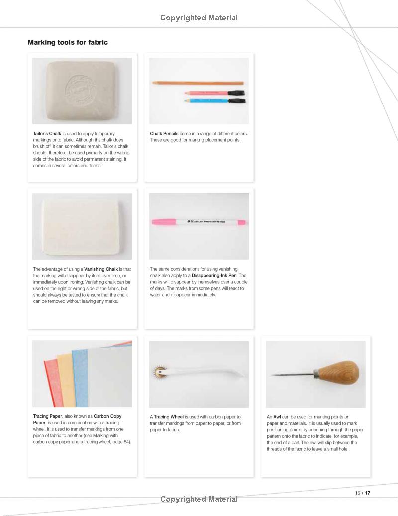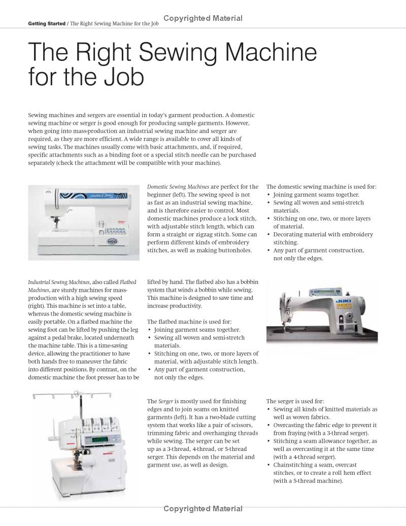 Chương Một giới thiệu về các dụng cụ và máy móc may (bao gồm cả máy công nghiệp). Chương này giải thích cách làm việc với các mẫu rập (pattern) và các phương pháp cắt vải.