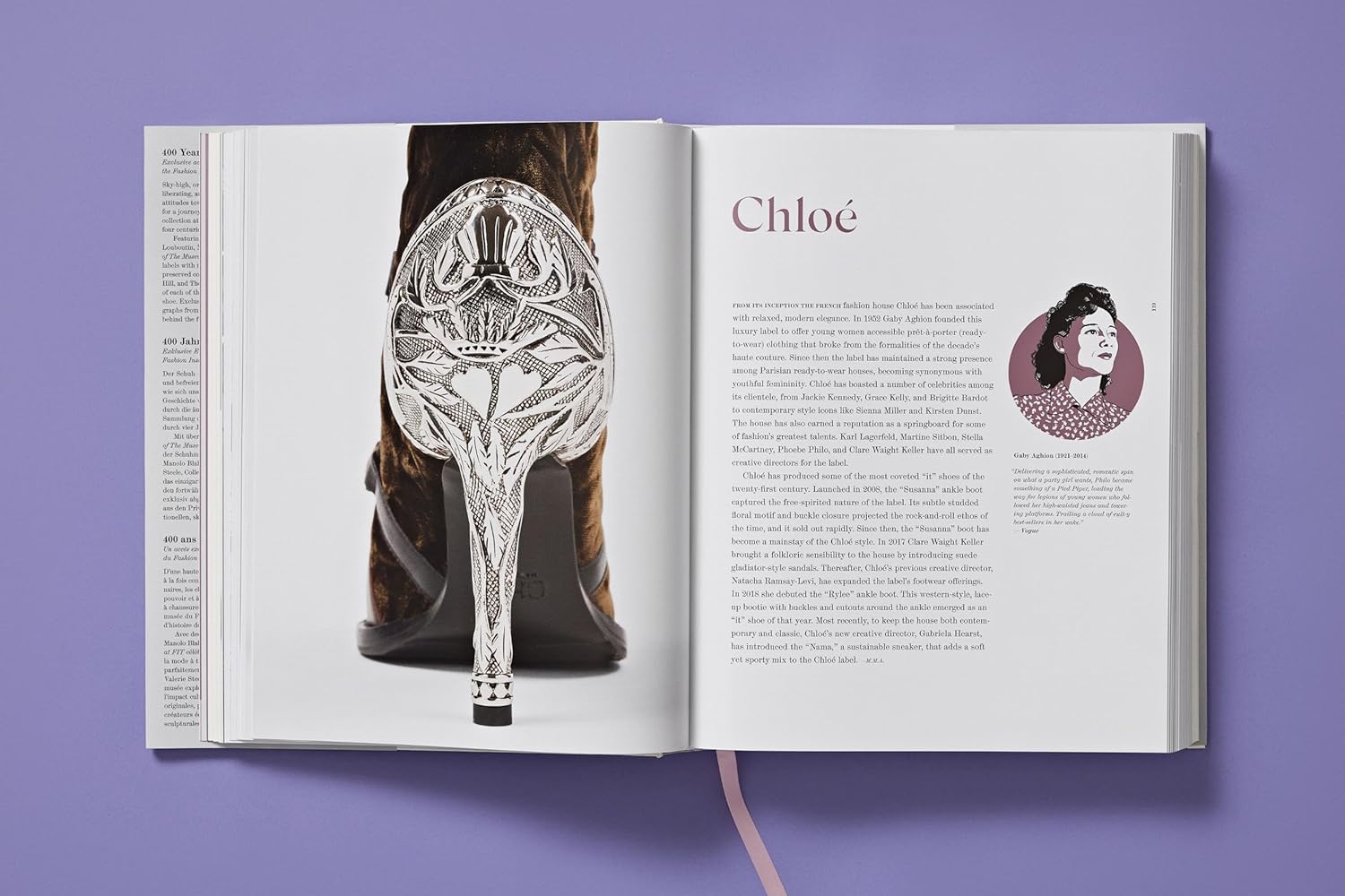 Cuốn sách giới thiệu hơn 400 mẫu giày biểu tượng của những nhà mốt hàng đầu như Louis Vuitton, Ferragamo, Chanel, Gucci, Saint Laurent, Roger Vivier và Christian Louboutin. Các bài viết của Daphne Guinness, Valerie Steele cùng đội ngũ giám tuyển làm sáng tỏ di sản sáng tạo và tác động văn hóa của từng nhà thiết kế.