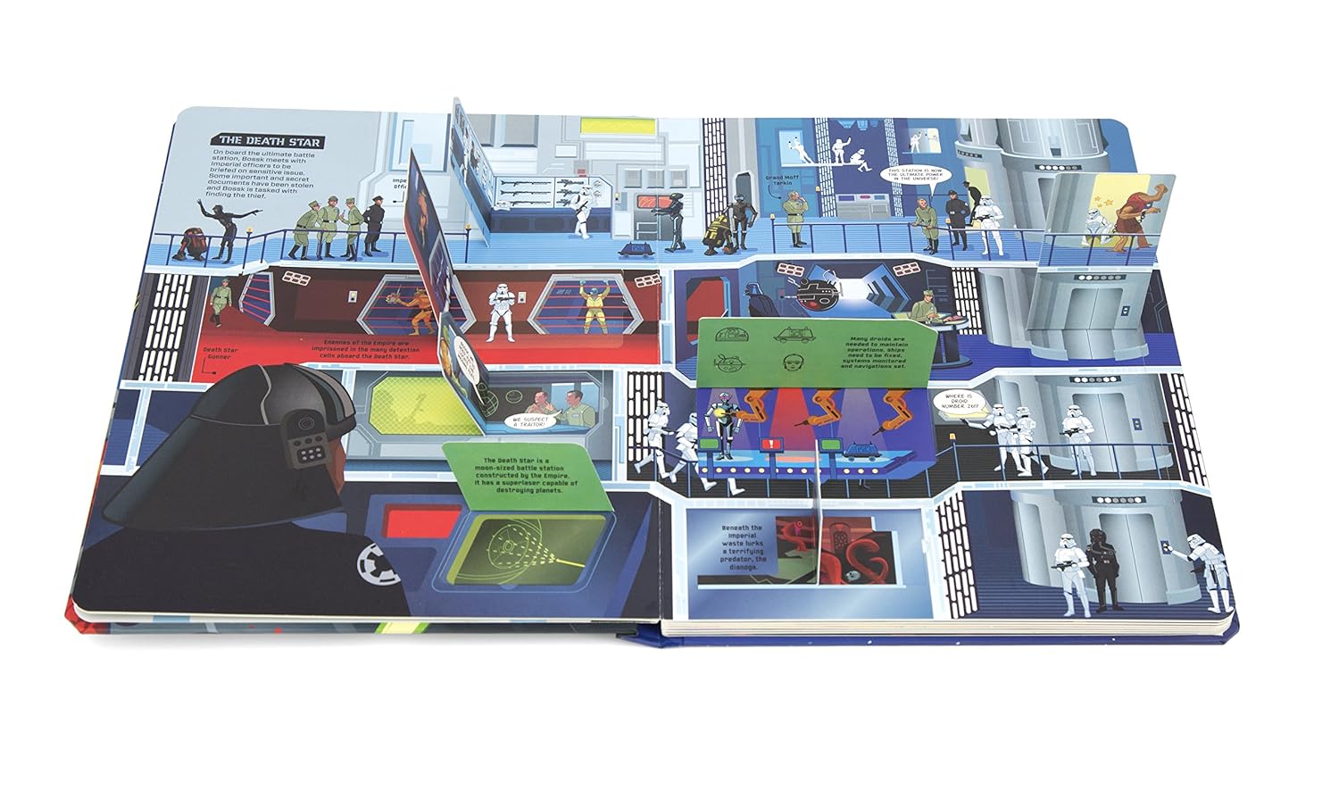 Mỗi trang đều có các miếng lật tương tác, hé lộ thông tin mới và manh mối giúp Bossk lần ra mục tiêu. Cuốn sách mang đến trải nghiệm vừa học vừa chơi sinh động, đồng thời mở ra cánh cửa đến nhiều đầu sách hoạt động hấp dẫn khác trong vũ trụ Chiến tranh giữa các vì sao.