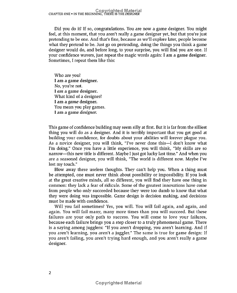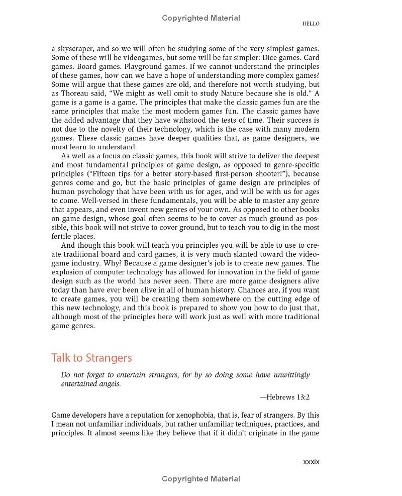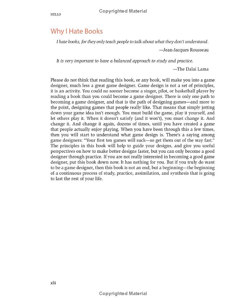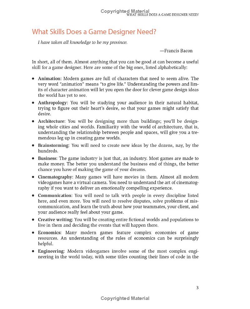 Cuốn sách cung cấp hướng dẫn thực tiễn để tạo ra những trò chơi đẳng cấp, có khả năng chơi lại cao. Phiên bản mới được bổ sung nhiều ví dụ từ VR, AR và các trò chơi hiện đại như Uncharted 4, The Last of Us, game miễn phí, game lai và các mô hình thiết kế đột phá khác.
