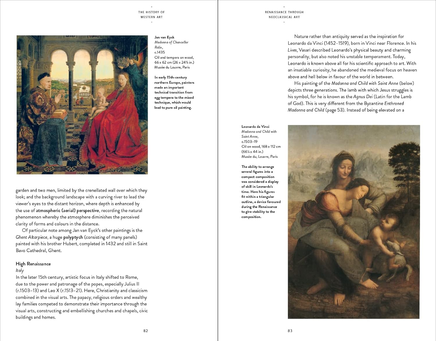 Mỗi chương đều đặt nghệ thuật vào bối cảnh lịch sử cụ thể, đề cập đến cấu trúc xã hội, chính trị, tín ngưỡng, khoa học và phong tục. Cách tiếp cận này giúp người đọc thấy rõ mối liên hệ giữa tác phẩm nghệ thuật và thế giới đã sản sinh ra nó.
