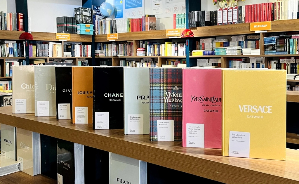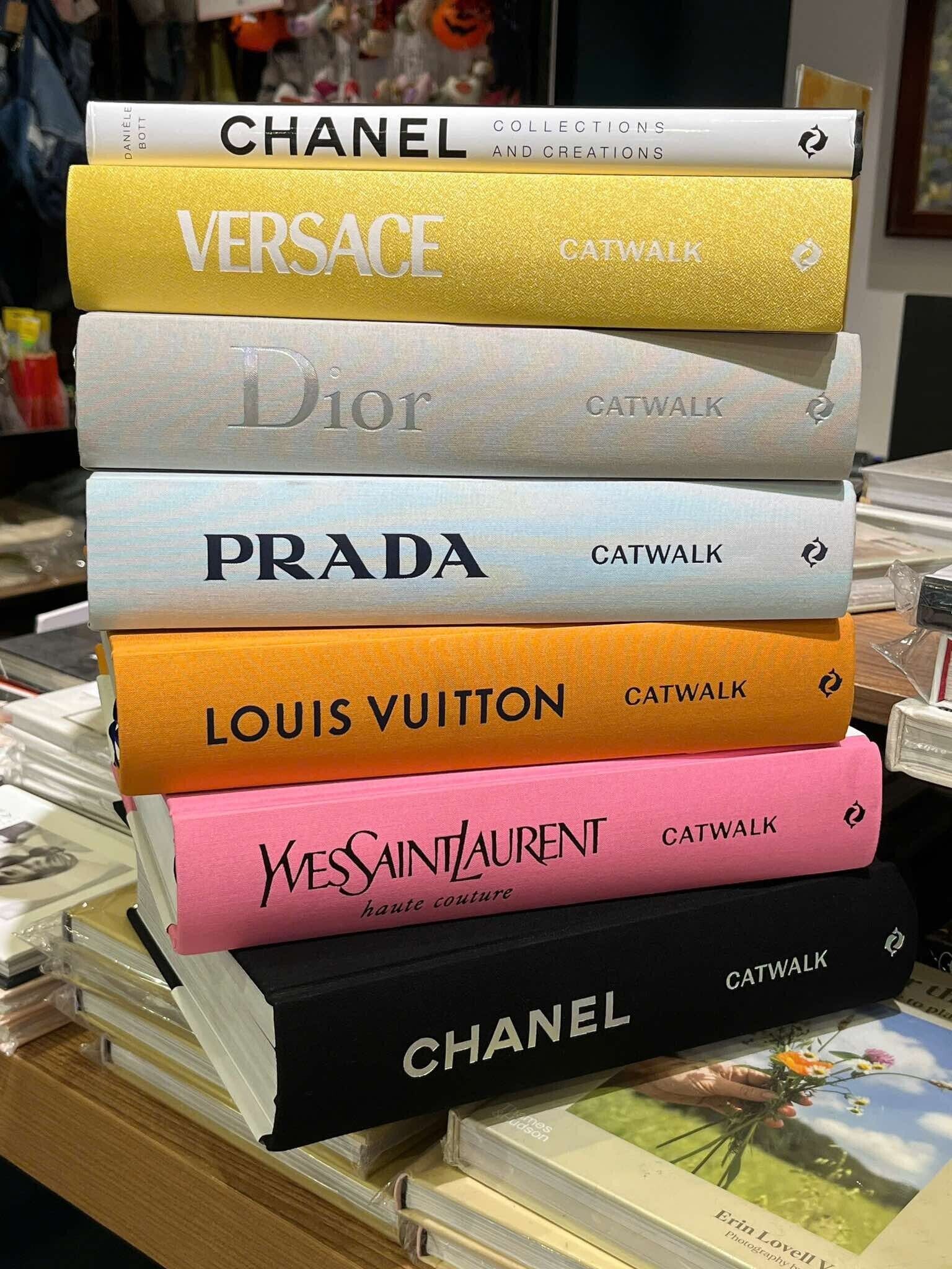 Về mặt trưng bày, trọn bộ Catwalk tạo hiệu ứng thị giác ấn tượng nhờ kích thước khổ lớn đồng bộ và thiết kế gáy tối giản đặc trưng của series. Khi xếp chồng hoặc đặt nối tiếp trên kệ dài, bộ sách mang lại cảm giác như một “fashion archive” thu nhỏ, giúp không gian trở nên sâu và có chiều cao thẩm mỹ rõ rệt. Sự hòa quyện giữa các bảng màu trung tính cùng điểm nhấn đặc trưng của từng thương hiệu khiến tổng thể vừa hài hòa vừa nổi bật, đặc biệt phù hợp với không gian theo phong cách contemporary, tối giản hoặc quiet luxury.